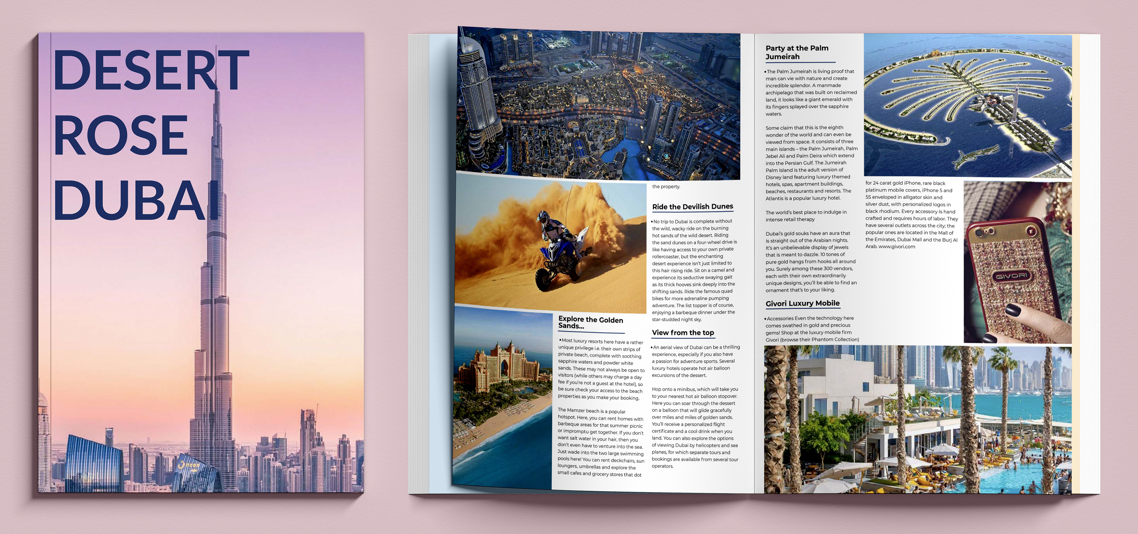 The magazine I designed called "Desert Rose Dubai", was part of my University typography assignment. These are mockups of how the magazine will look like.