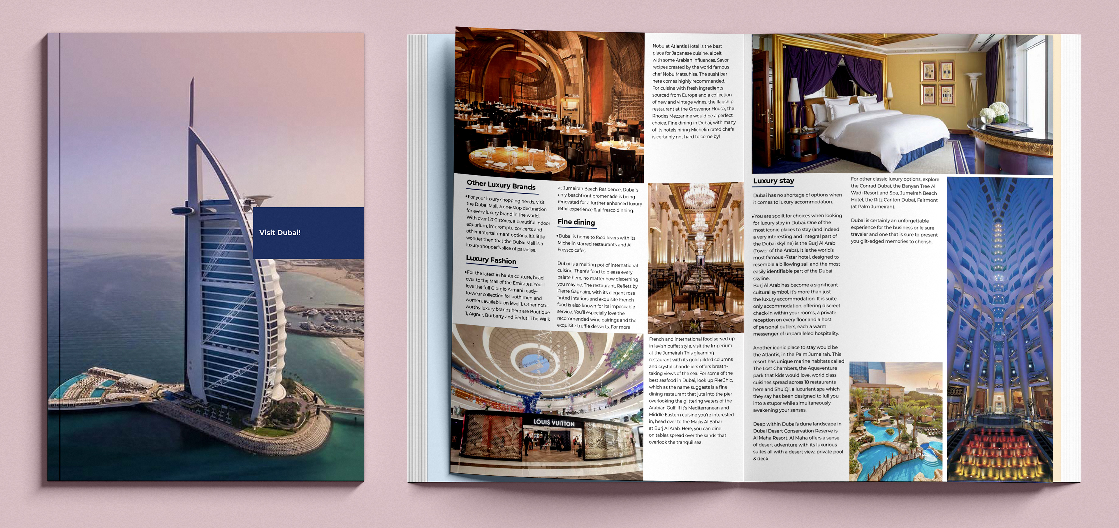 I designed the magazine in Adobe Indesign. The idea was to show Dubai's beauty and how it is an amazing tourist destination.