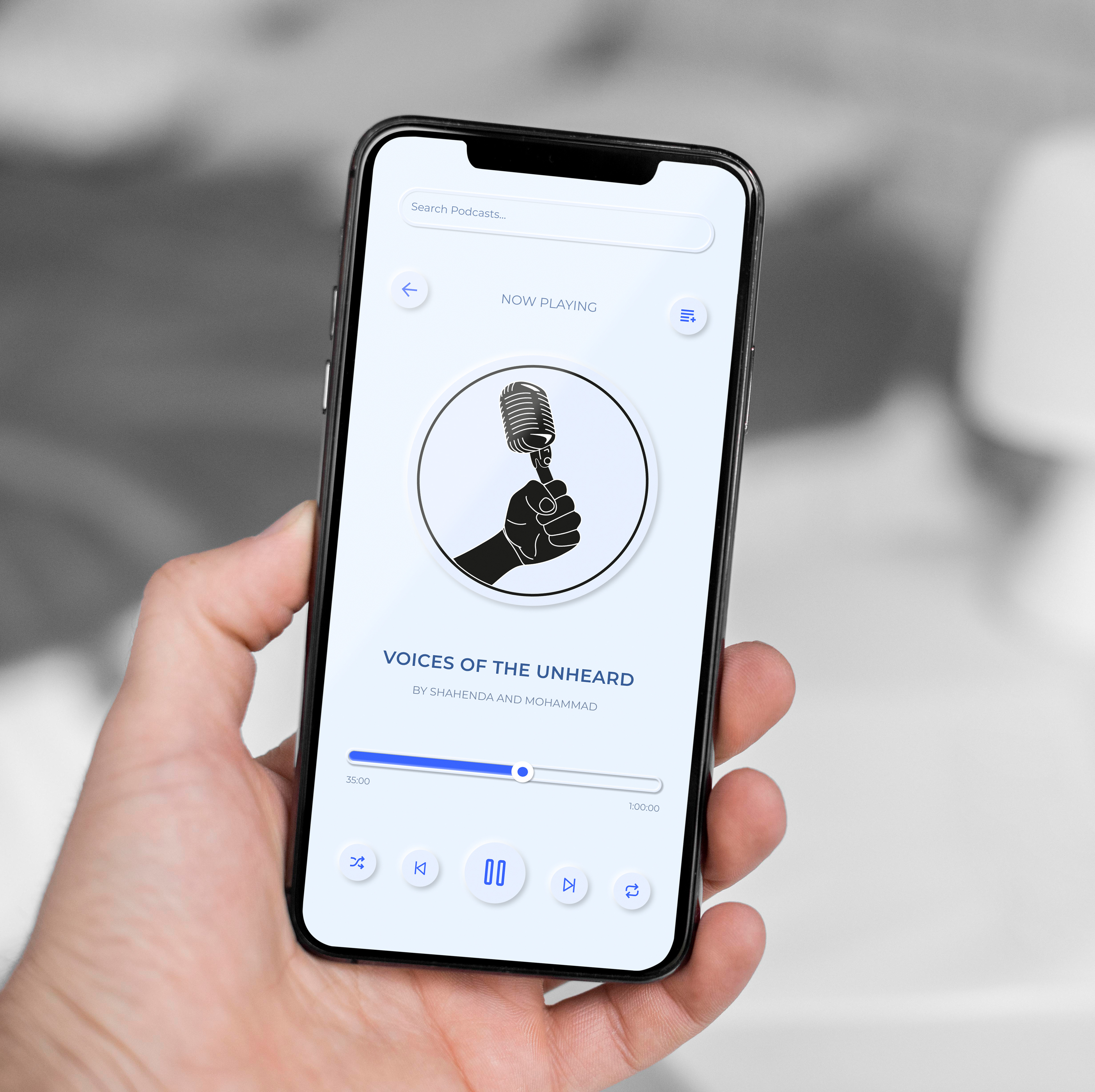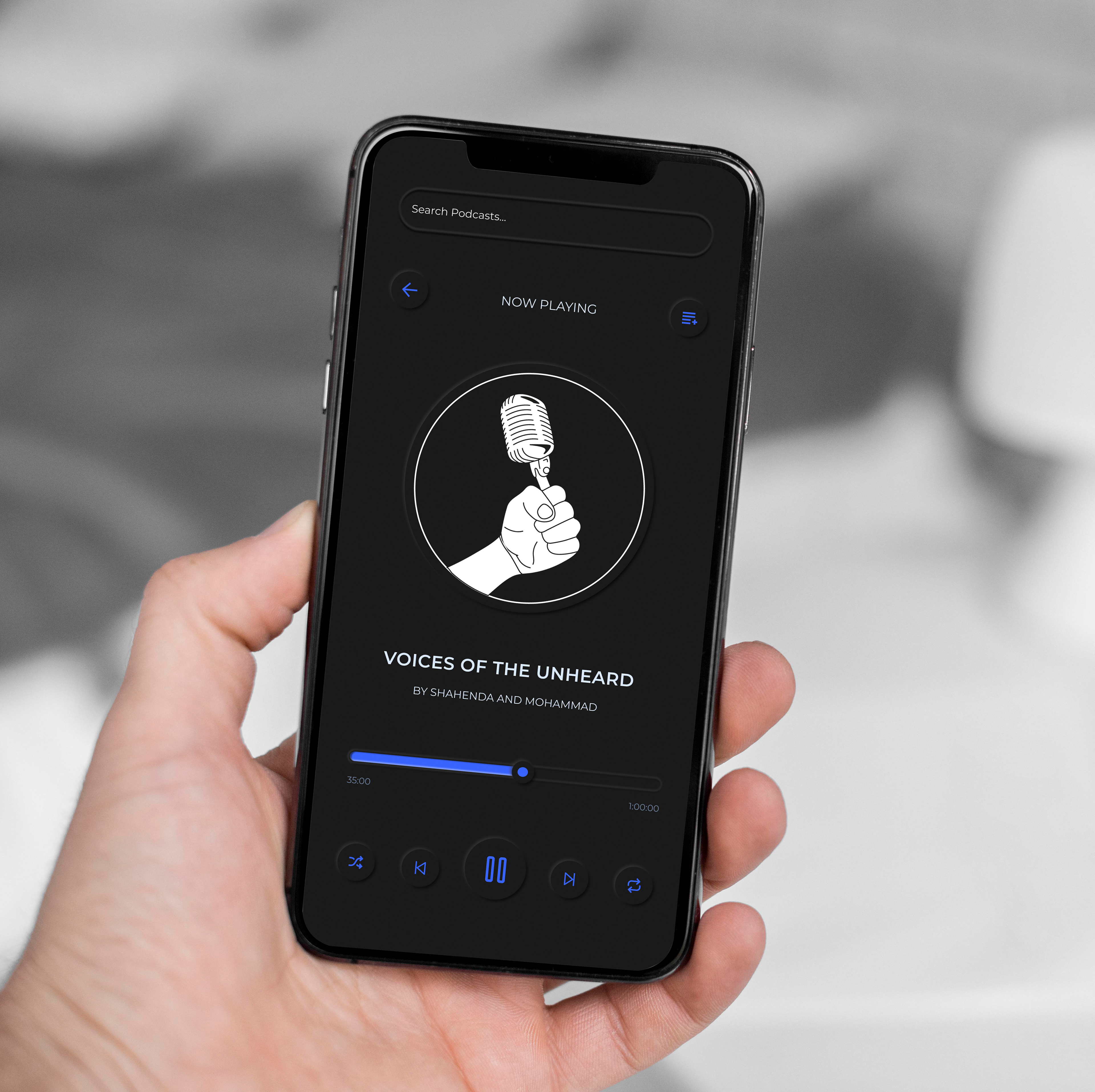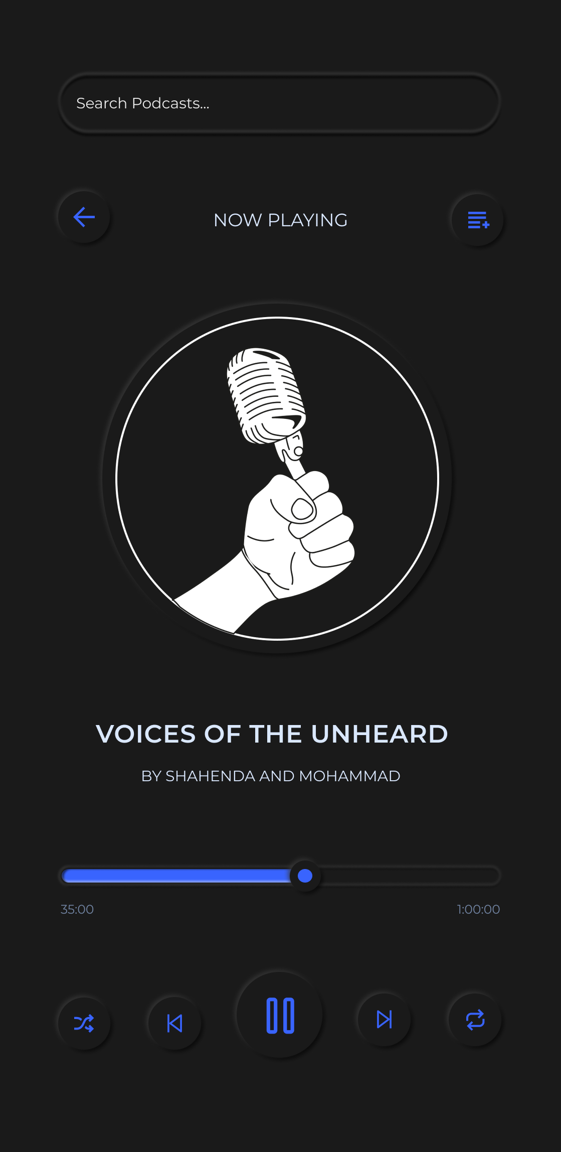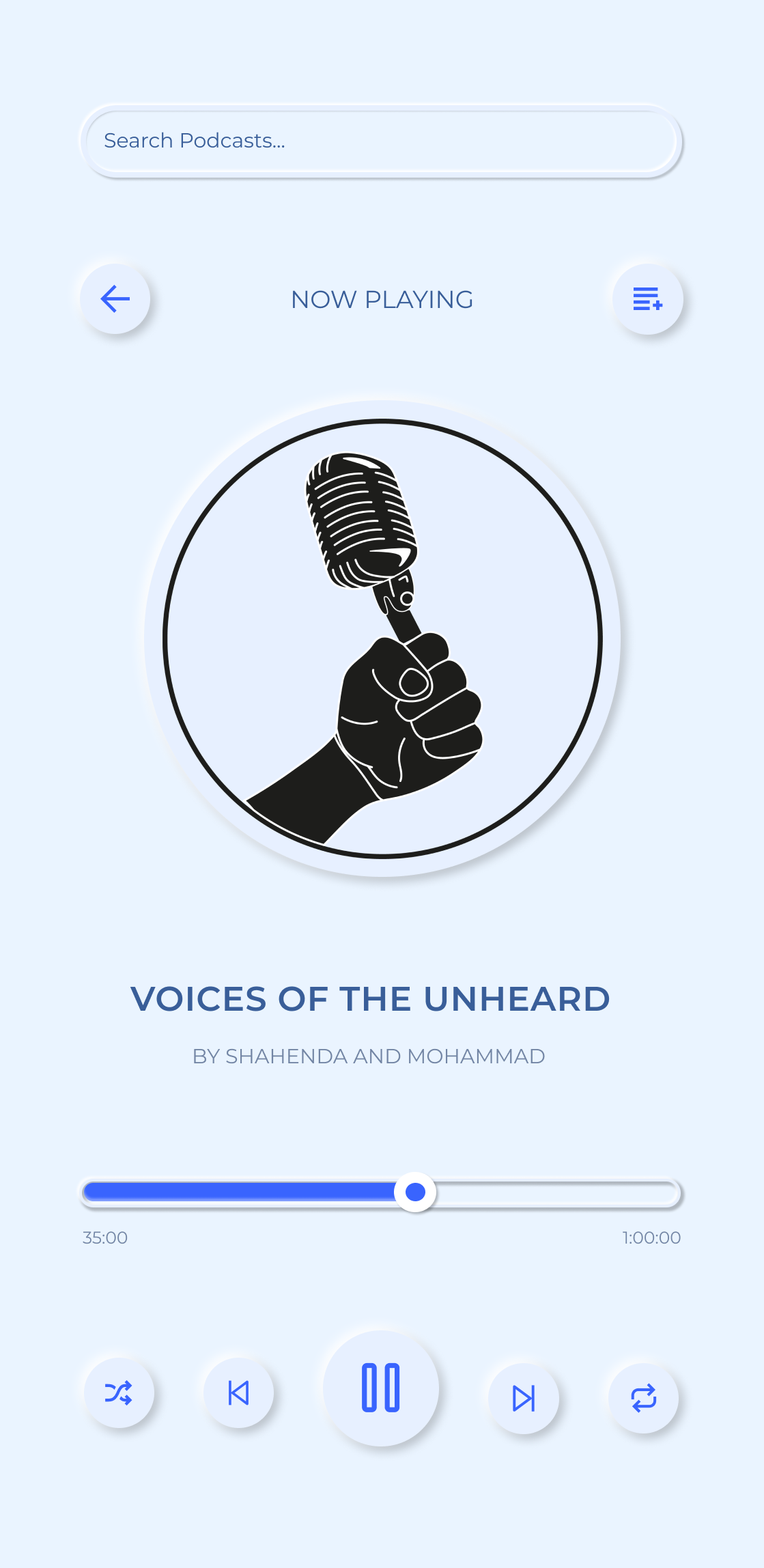 I created an app following the podcast logo " Voices of the unheard". I went with a neumorphic theme and created it on Figma.